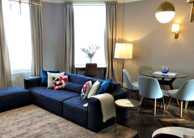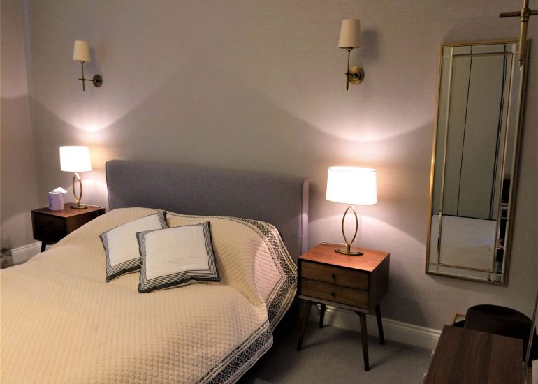 This was one of a series of projects carried out for an overseas client with close communications continued online. Substantial alterations were carried out in the bathroom to incorporate a walk-in shower. Sensitivities included extracting and replacing bathroom china with as little damage as possible, as well as retiling the walls, sourcing an exact match with the existing bathroom tiles. The newly acquired property required removal and disposal of the old furniture, fully redecorating and refurnishing in the client’s absence. Preparing the flat for their arrival, all beds were made by The Studio, the fridge filled and flowers bought to welcome the family home for the first time.