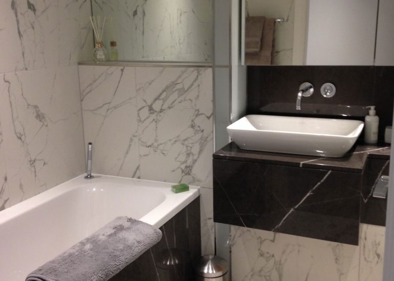 Carried out for a repeat client and good friend, this London apartment was fully refurbished to a high specification for letting purposes. The brief was to redesign swiftly and cost effectively with style. On completion of works, the flat was imaginatively fully kitted out by The Studio, from the bedlinen to the artwork, ready for the rental market.