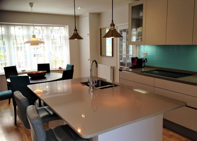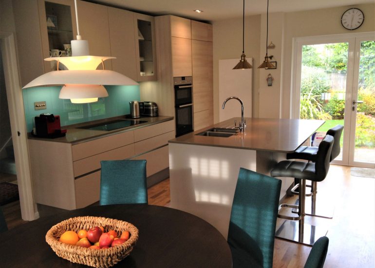 After the initial creative process, we were introduced to a team of builders organised by Emma. They proceeded to reduce our original kitchen to rubble within a day. At that point, we knew there was no turning back and trust was paramount. Under Emma's expert guidance and attention to detail we felt secure. It was transformed from a shell to a practical and stunning kitchen dining room just as we had imagined. Emma's forte was the ability to direct us in practical and creative ways, which we would never have thought of.”